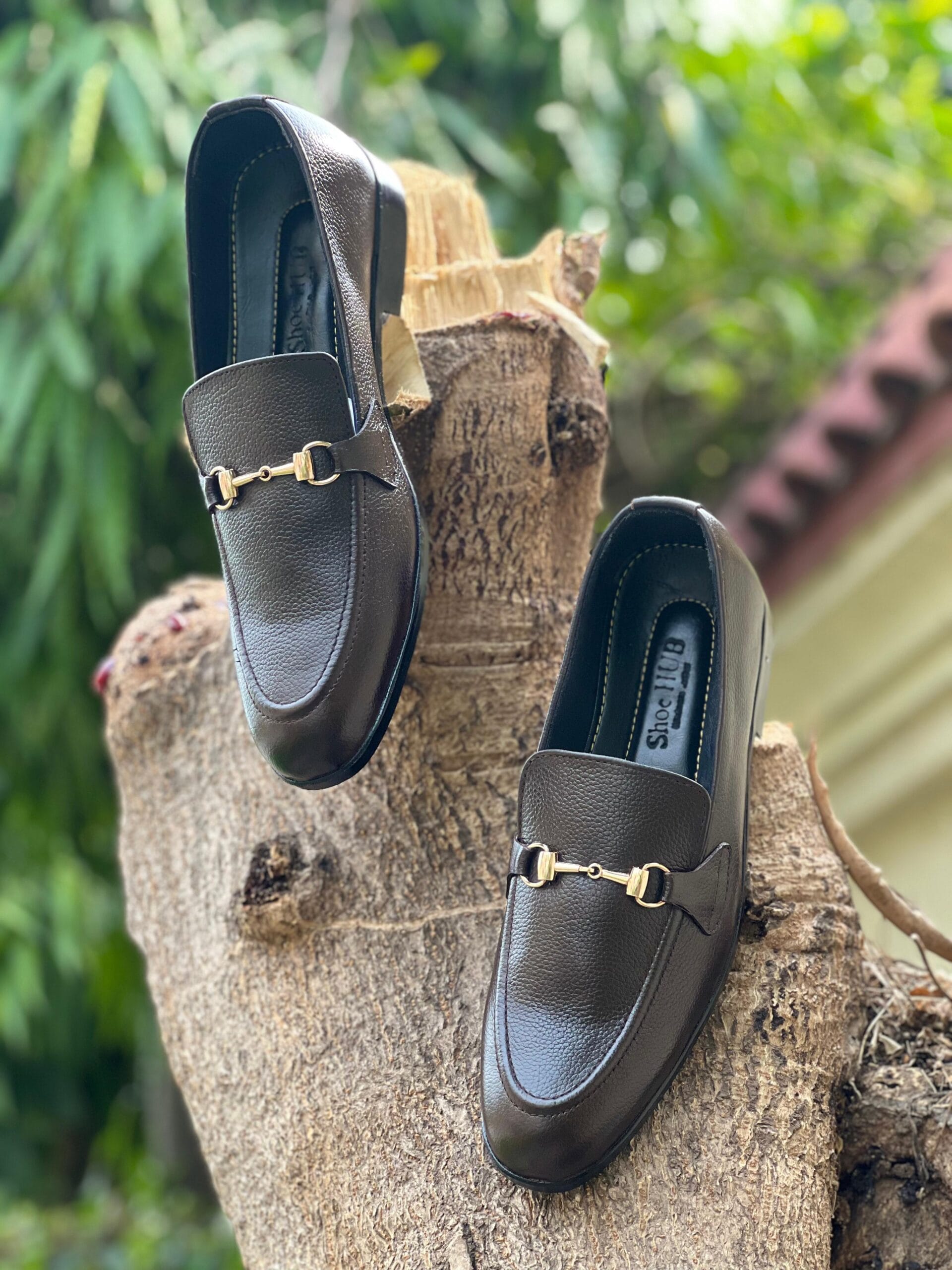 The DUCHAMP is a statement of refined taste, crafted for those who value timeless elegance and artisanal quality. This handmade loafer is constructed using premium full-grain leather, featuring a deep chocolate brown finish that’s both rich in tone and texture. A gold-tone horsebit detail adorns the vamp, giving the shoe a touch of equestrian-inspired sophistication, ideal for both formal and upscale casual wear.