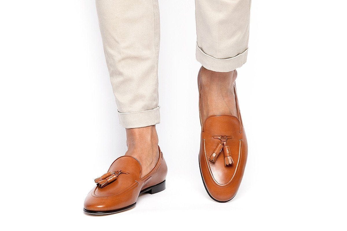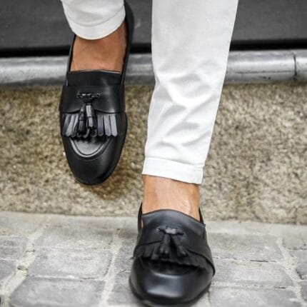 Add a touch of sophistication to your wardrobe with the ROYCE TASSEL LOAFERS. Crafted from premium leather, these loafers feature a sleek silhouette with elegant tassel detailing, making them a timeless choice for both formal and casual occasions. The soft leather lining ensures all-day comfort, while the durable sole provides excellent support and longevity. Whether paired with tailored suits or smart-casual outfits, the ROYCE loafers bring effortless refinement to your style.
